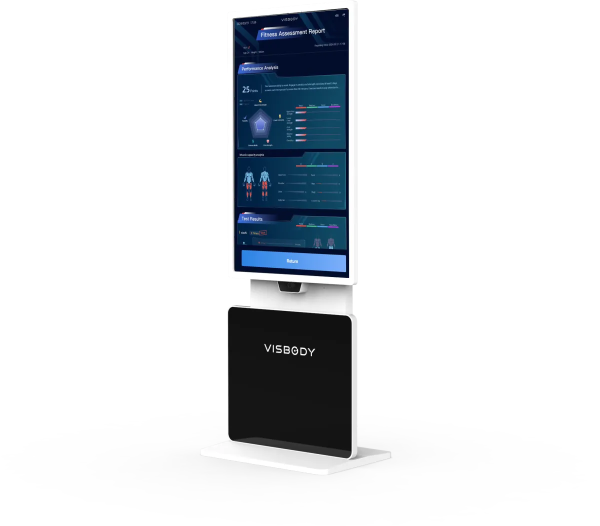 Hybrid technology, including 3D body scanning and Bioelectrical Impedance Analysis (BIA), allows the Visbody S30 to offer comprehensive 3D body scans.